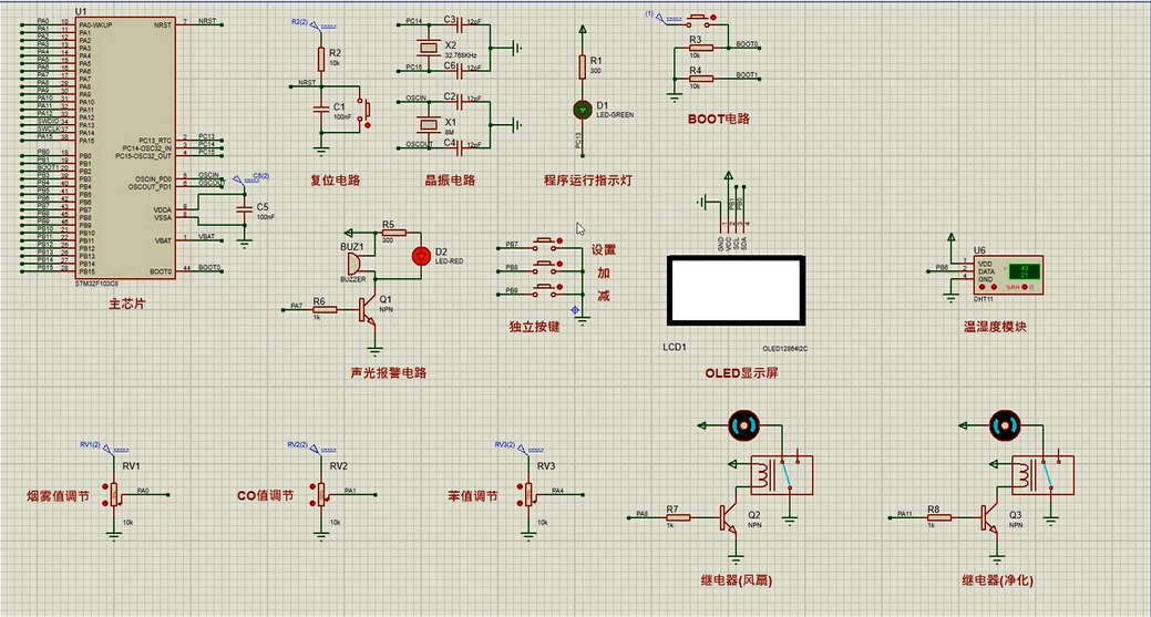 注意:部分实物元器件仿真中没有,仿真中会用其他工作原理相似的元件代替,这样可能导致实物程序和仿真程序不一样
