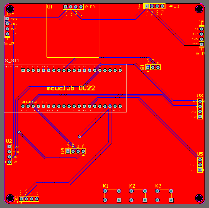 PCB图是由原理图导出,封装很大一部分都是作者自己绘制,不提供封装库,只提供连接好的源文件,可以直接在嘉立创进行打板。两层板,上下覆铜接地。