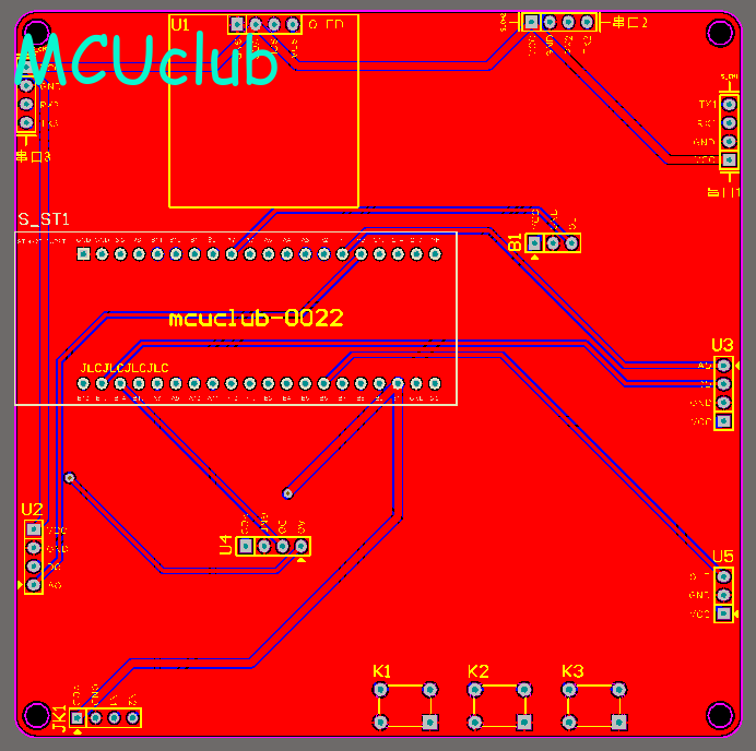注意:PCB图中间有一个项目编号,隐藏在单片机底座下,插入单片机后不会看到。如果想截没有项目编号的PCB图,可在PCB源文件中点击删除。另外,如果想在实物PCB板上加自己的信息(比如日期、学号、姓名等),可联系客服。