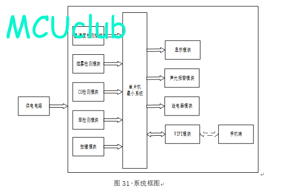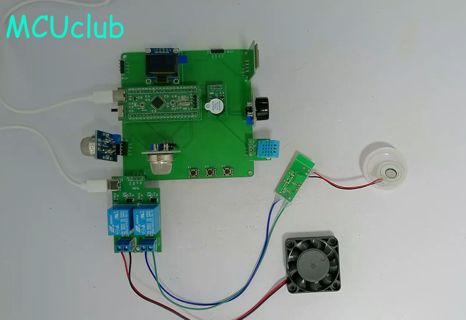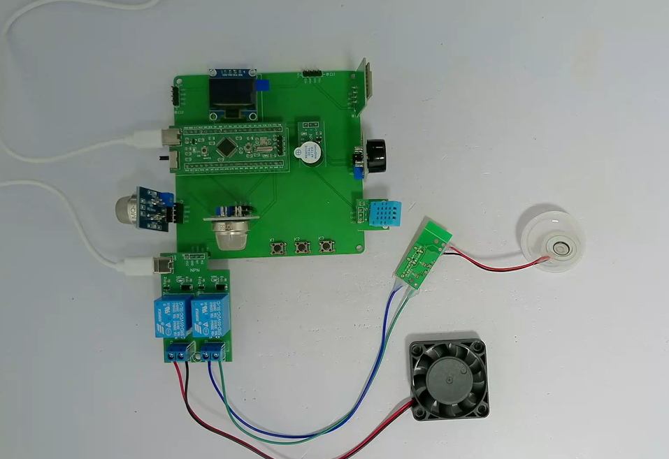 2、通过MQ-2模块检测烟雾值,当烟雾值大于设置最大值时开启风扇和净化器,同时进行声光报警提醒