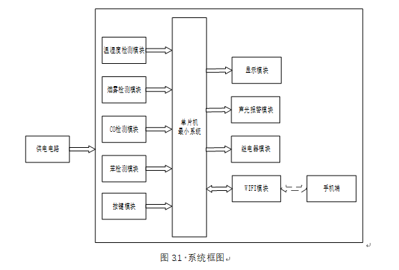 5、通过按键设置温湿度上下限值、烟雾、CO及苯气体最大值,另外,当烟雾值、CO值及苯气体值小于等于设置最大值时,可手动控制风扇或净化器开关