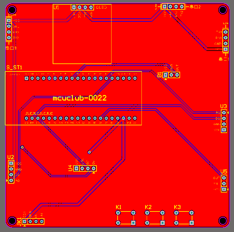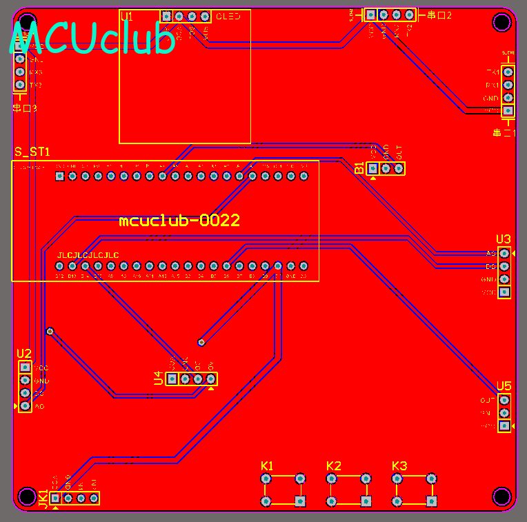 PCB图是由原理图导出,封装很大一部分都是作者自己绘制,不提供封装库,只提供连接好的源文件,可以直接在嘉立创进行打板。两层板,上下覆铜接地。
