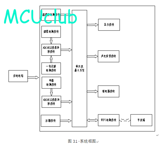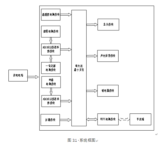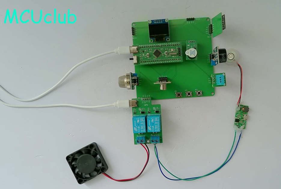 2、通过MQ-2模块检测烟雾值,当烟雾值大于设置最大值时开启风扇和净化器,同时进行声光报警提醒