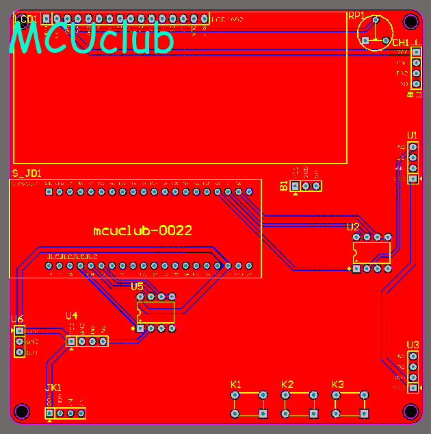 PCB图是由原理图导出,封装很大一部分都是作者自己绘制,不提供封装库,只提供连接好的源文件,可以直接在嘉立创进行打板。两层板,上下覆铜接地。