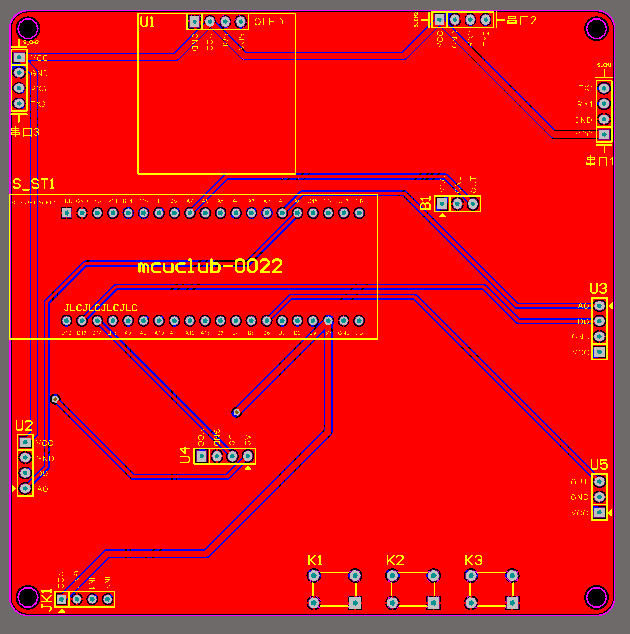 注意:PCB图中间有一个项目编号,隐藏在单片机底座下,插入单片机后不会看到。如果想截没有项目编号的PCB图,可在PCB源文件中点击删除。另外,如果想在实物PCB板上加自己的信息(比如日期、学号、姓名等),可联系客服。