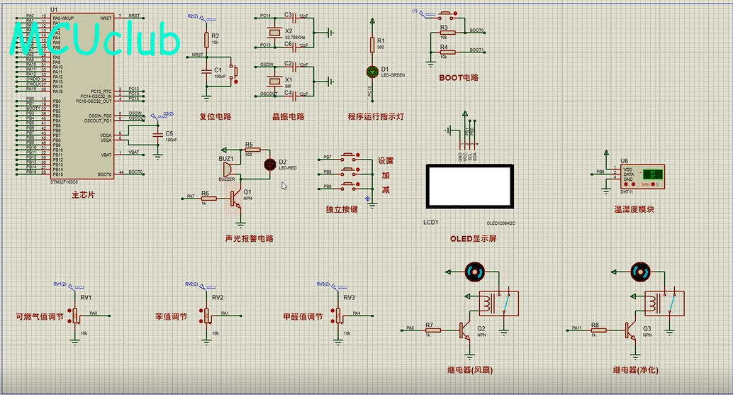 注意:部分实物元器件仿真中没有,仿真中会用其他工作原理相似的元件代替,这样可能导致实物程序和仿真程序不一样