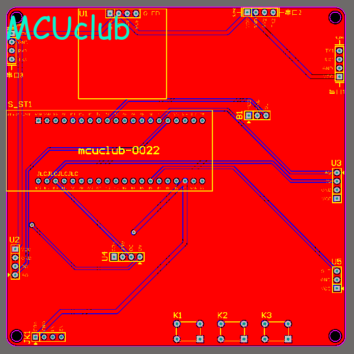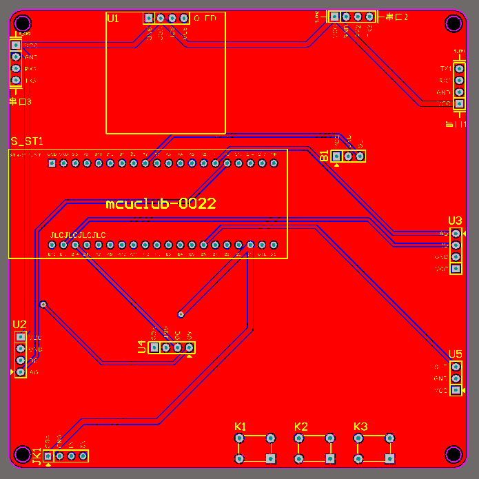 PCB图是由原理图导出,封装很大一部分都是作者自己绘制,不提供封装库,只提供连接好的源文件,可以直接在嘉立创进行打板。两层板,上下覆铜接地。
