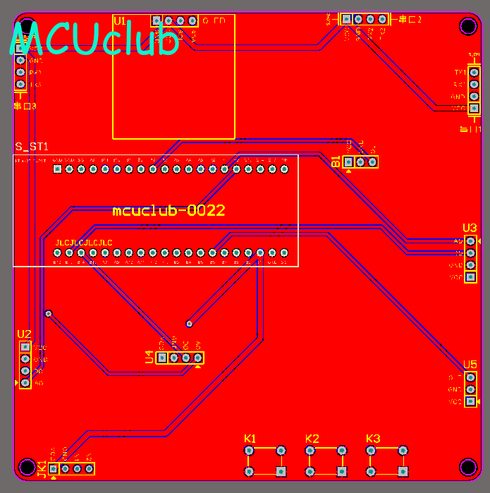 注意:PCB图中间有一个项目编号,隐藏在单片机底座下,插入单片机后不会看到。如果想截没有项目编号的PCB图,可在PCB源文件中点击删除。另外,如果想在实物PCB板上加自己的信息(比如日期、学号、姓名等),可联系客服。