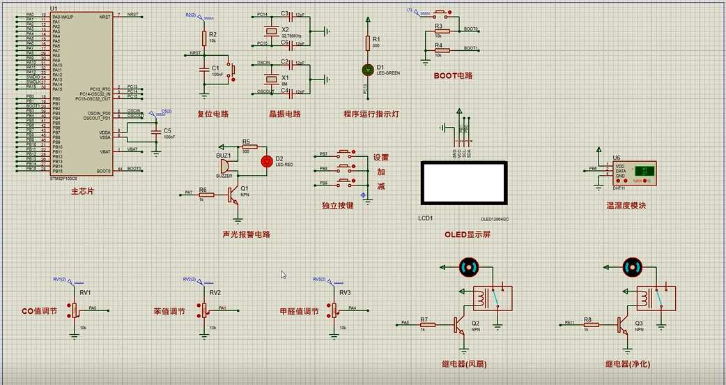 注意:部分实物元器件仿真中没有,仿真中会用其他工作原理相似的元件代替,这样可能导致实物程序和仿真程序不一样