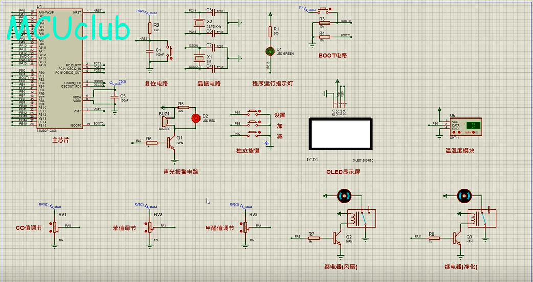 4、通过MS1100模块检测甲醛值,当甲醛值大于设置最大值时开启风扇和净化器,同时进行声光报警提醒