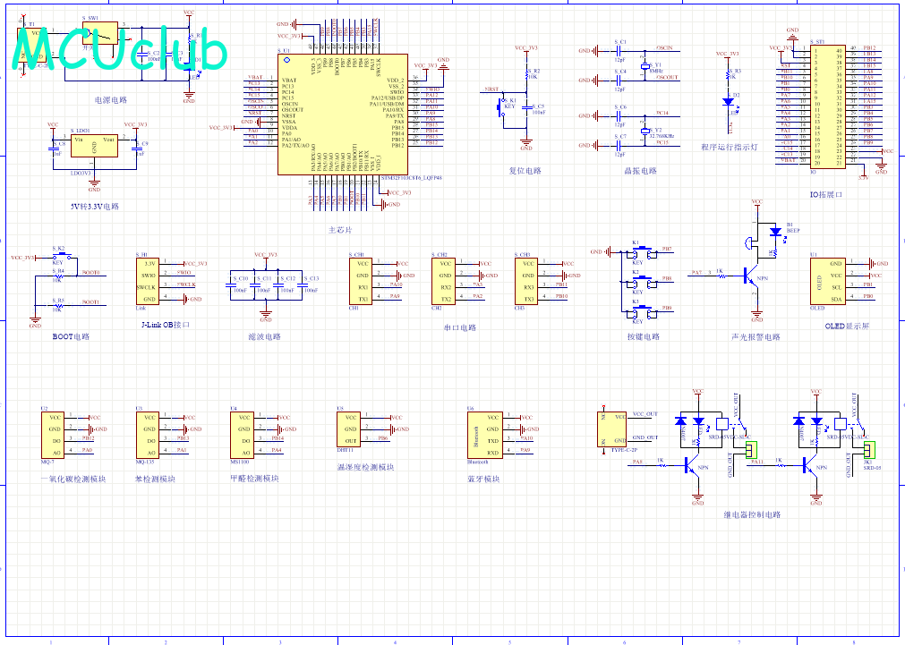 PCB图是由原理图导出,封装很大一部分都是作者自己绘制,不提供封装库,只提供连接好的源文件,可以直接在嘉立创进行打板。两层板,上下覆铜接地。