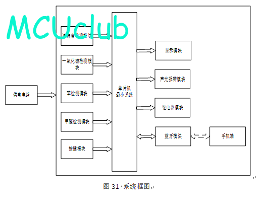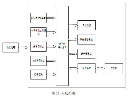 2、通过MQ-7模块检测CO值,当CO值大于设置最大值时开启风扇和净化器,同时进行声光报警提醒