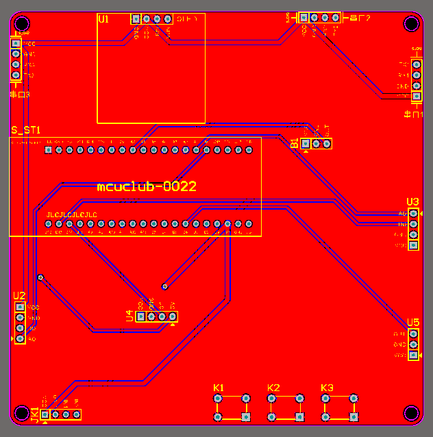 底板:底板在嘉立创进行打板,为绿色PCB板,两层板,厚度1.2,上下覆铜接地。元器件基本上为插针式,个别降压芯片会使用贴片式。
