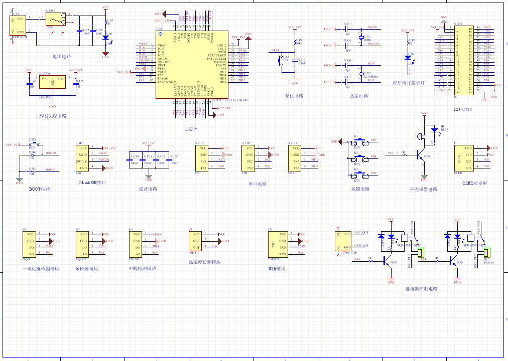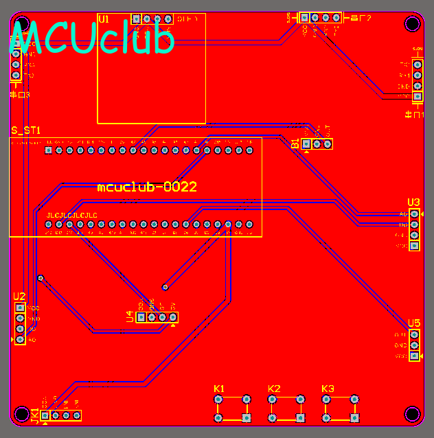 PCB图是由原理图导出,封装很大一部分都是作者自己绘制,不提供封装库,只提供连接好的源文件,可以直接在嘉立创进行打板。两层板,上下覆铜接地。
