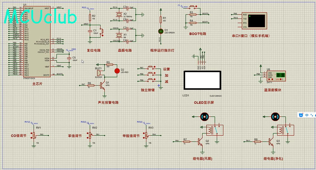 注意:部分实物元器件仿真中没有,仿真中会用其他工作原理相似的元件代替,这样可能导致实物程序和仿真程序不一样
