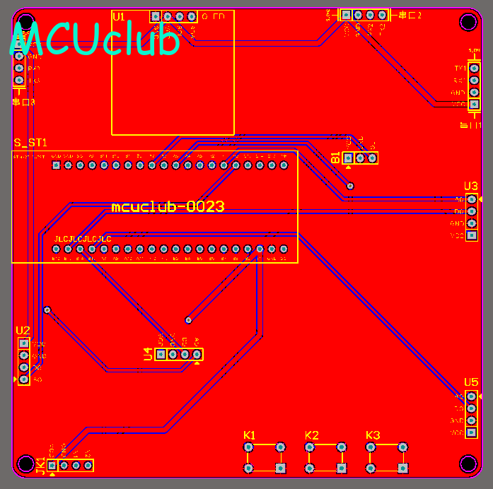 注意:PCB图中间有一个项目编号,隐藏在单片机底座下,插入单片机后不会看到。如果想截没有项目编号的PCB图,可在PCB源文件中点击删除。另外,如果想在实物PCB板上加自己的信息(比如日期、学号、姓名等),可联系客服。