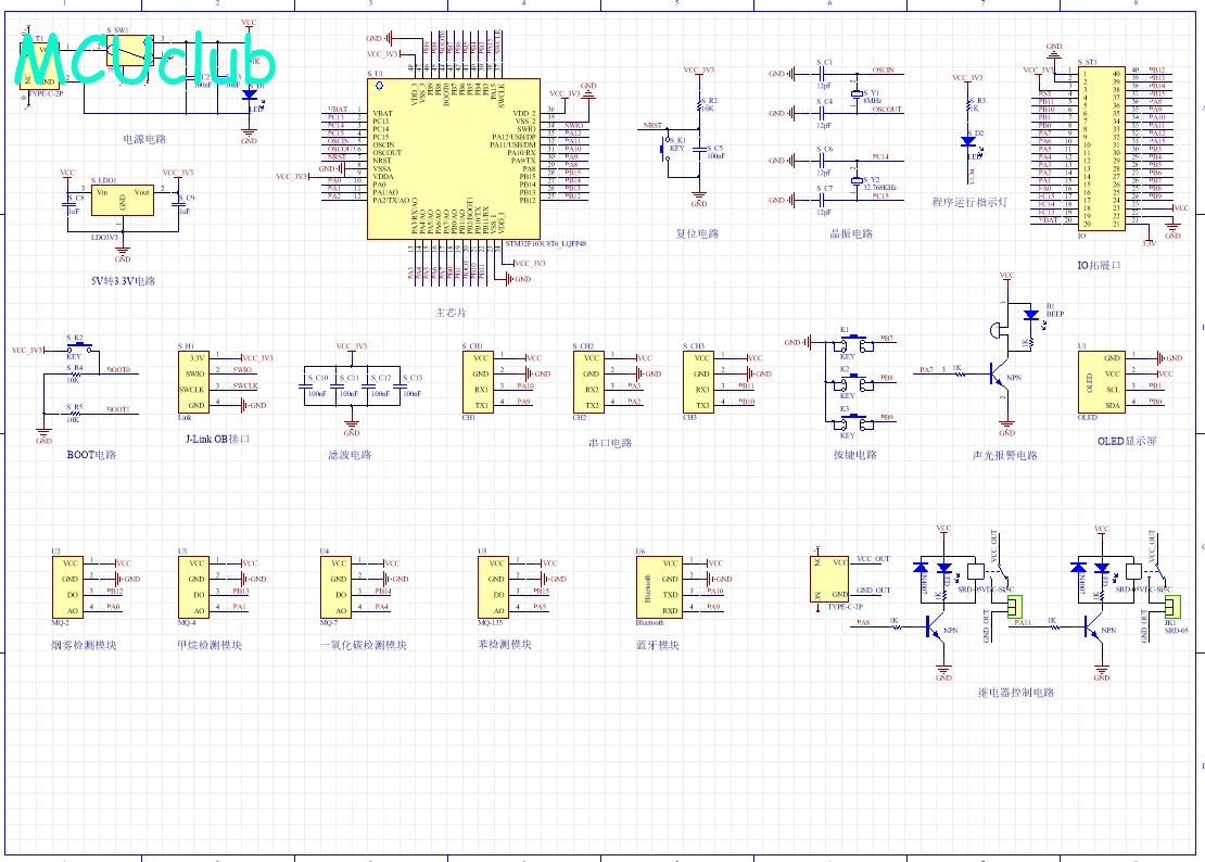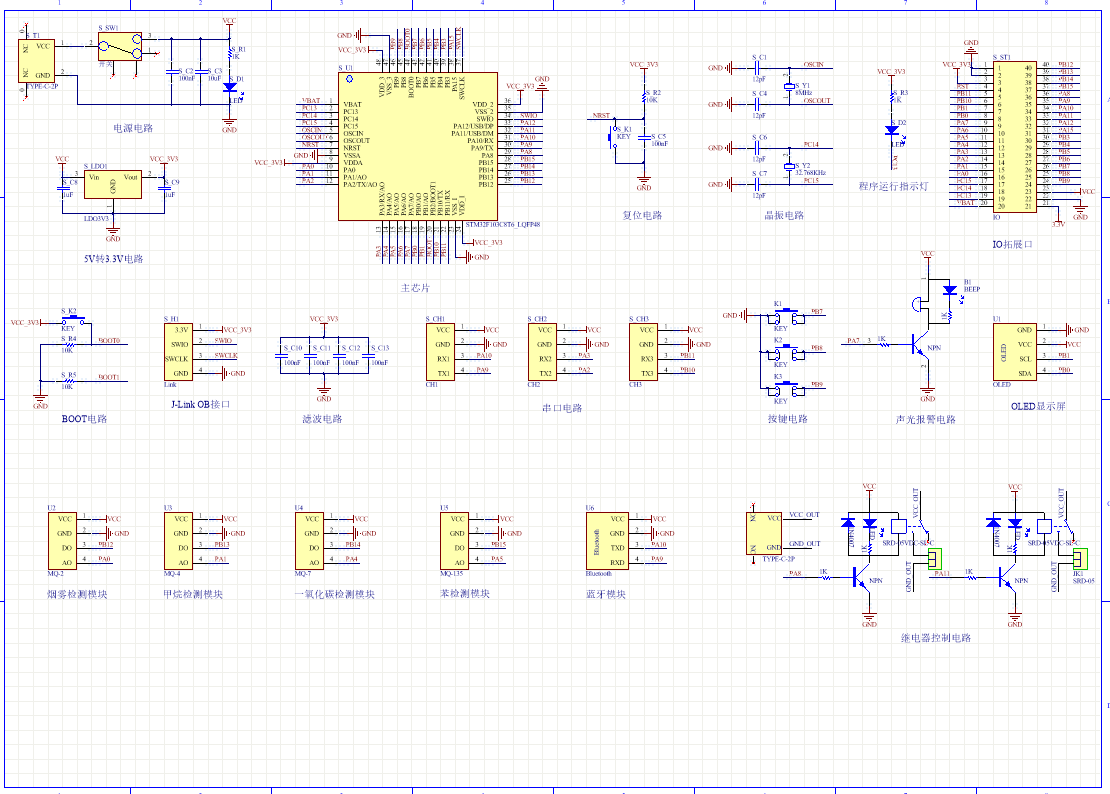 PCB图是由原理图导出,封装很大一部分都是作者自己绘制,不提供封装库,只提供连接好的源文件,可以直接在嘉立创进行打板。两层板,上下覆铜接地。