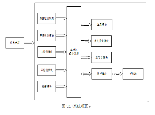 扩展功能:通过蓝牙模块将测量数据发送到手机端,手机端可设置烟雾、甲烷、CO及苯气体最大值,另外,当烟雾值、甲烷值、CO值及苯气体值小于等于设置最大值时,可远程控制风扇或净化器开关