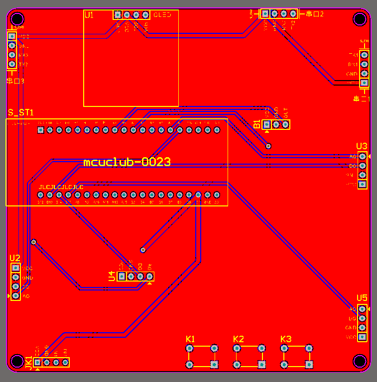 PCB图是由原理图导出,封装很大一部分都是作者自己绘制,不提供封装库,只提供连接好的源文件,可以直接在嘉立创进行打板。两层板,上下覆铜接地。