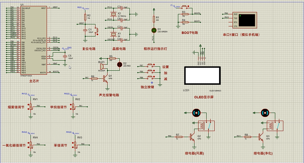 注意:部分实物元器件仿真中没有,仿真中会用其他工作原理相似的元件代替,这样可能导致实物程序和仿真程序不一样