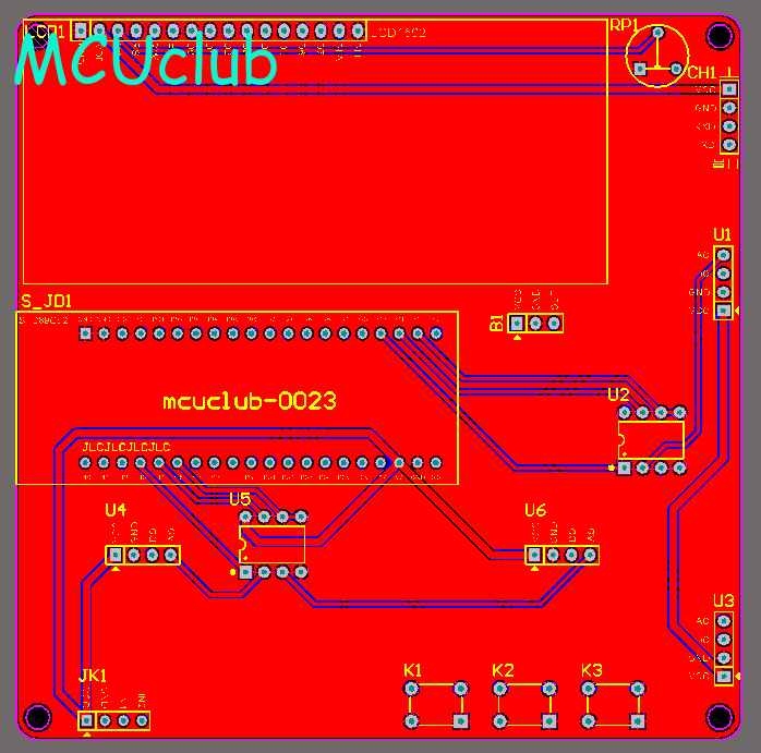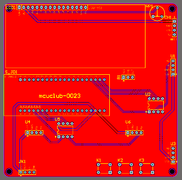 PCB图是由原理图导出,封装很大一部分都是作者自己绘制,不提供封装库,只提供连接好的源文件,可以直接在嘉立创进行打板。两层板,上下覆铜接地。