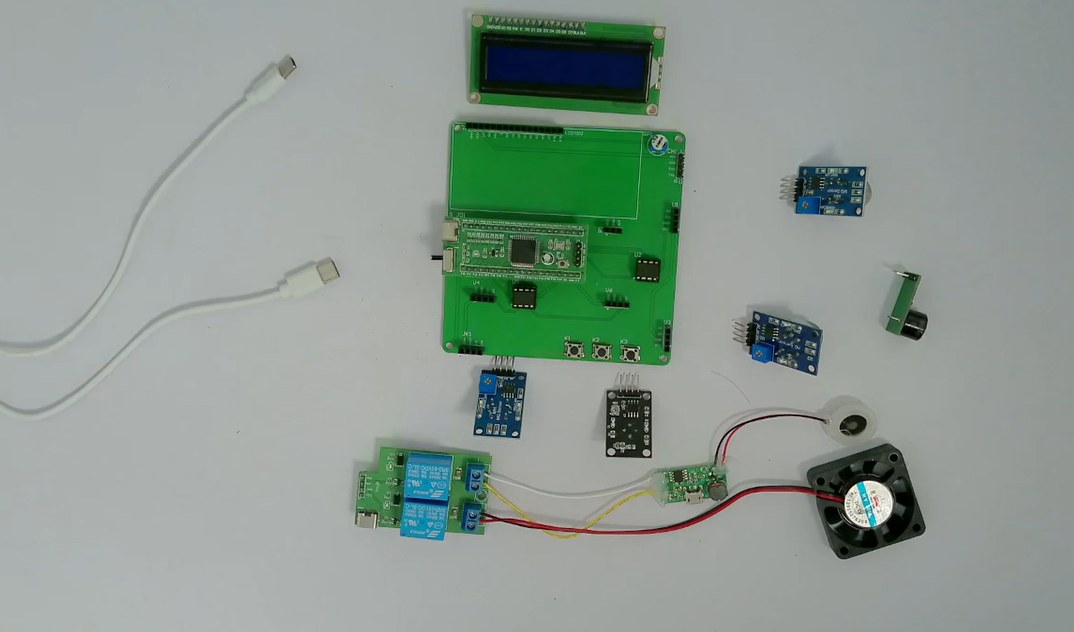 1、通过MQ-2模块检测烟雾值,当烟雾值大于设置最大值时开启风扇和净化器,同时进行声光报警提醒