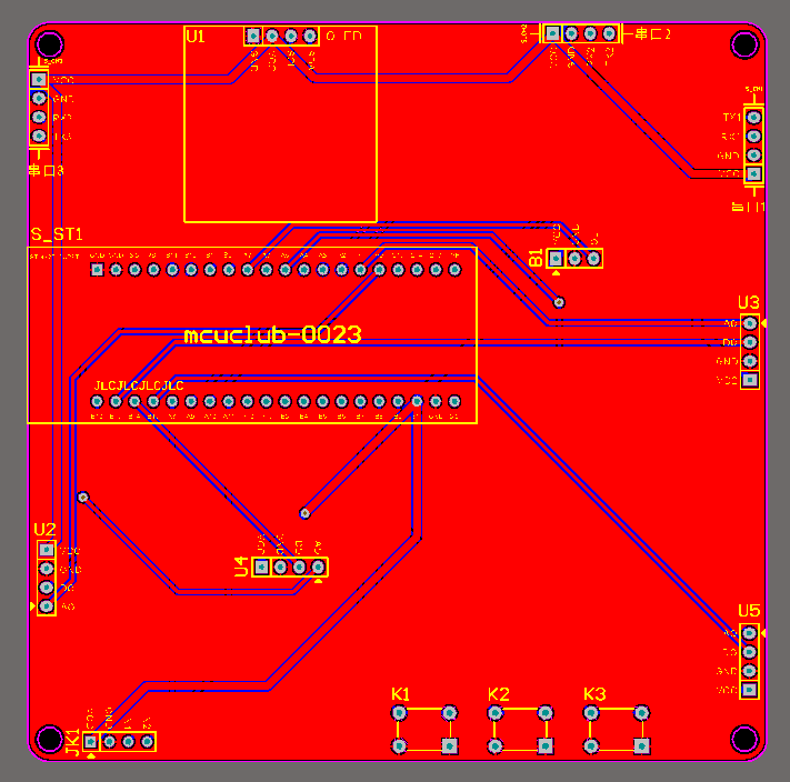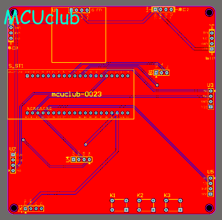 注意:PCB图中间有一个项目编号,隐藏在单片机底座下,插入单片机后不会看到。如果想截没有项目编号的PCB图,可在PCB源文件中点击删除。另外,如果想在实物PCB板上加自己的信息(比如日期、学号、姓名等),可联系客服。