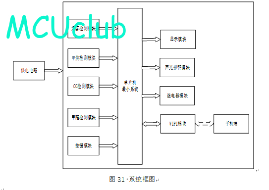 4、通过MS1100模块检测甲醛值,当甲醛值大于设置最大值时开启风扇和净化器,同时进行声光报警提醒