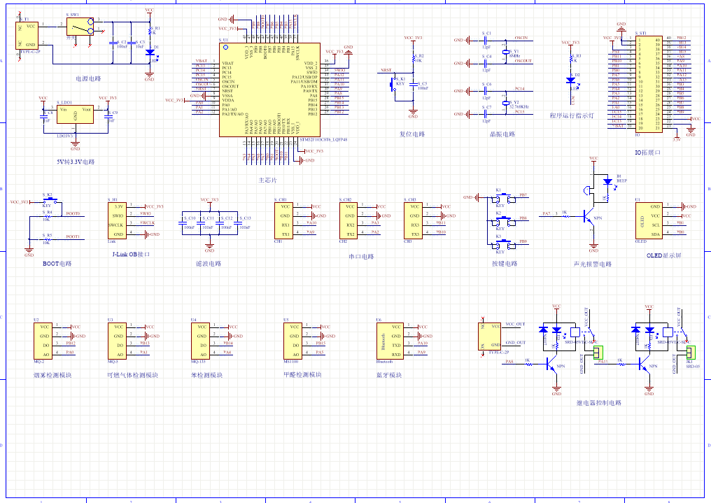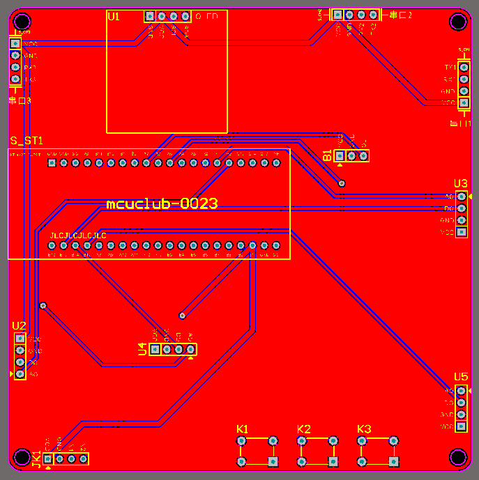 PCB图是由原理图导出,封装很大一部分都是作者自己绘制,不提供封装库,只提供连接好的源文件,可以直接在嘉立创进行打板。两层板,上下覆铜接地。
