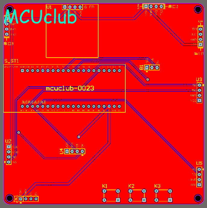 注意:PCB图中间有一个项目编号,隐藏在单片机底座下,插入单片机后不会看到。如果想截没有项目编号的PCB图,可在PCB源文件中点击删除。另外,如果想在实物PCB板上加自己的信息(比如日期、学号、姓名等),可联系客服。