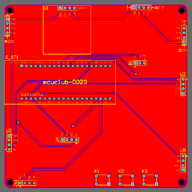 注意:PCB图中间有一个项目编号,隐藏在单片机底座下,插入单片机后不会看到。如果想截没有项目编号的PCB图,可在PCB源文件中点击删除。另外,如果想在实物PCB板上加自己的信息(比如日期、学号、姓名等),可联系客服。