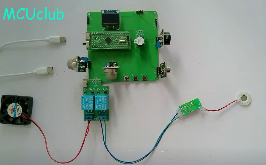 1、通过MQ-2模块检测烟雾值,当烟雾值大于设置最大值时开启风扇和净化器,同时进行声光报警提醒