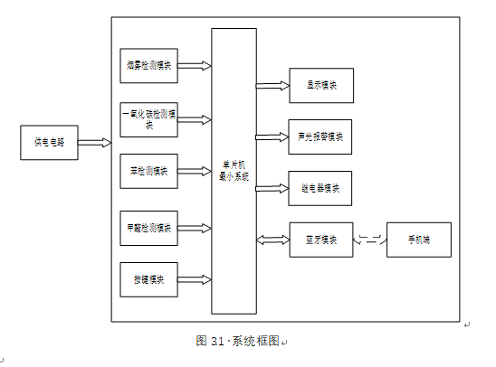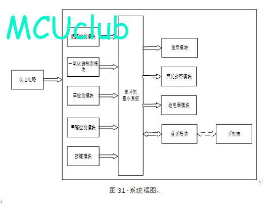 扩展功能:通过蓝牙模块将测量数据发送到手机端,手机端可设置烟雾、CO、苯气体及甲醛最大值,另外,当烟雾值、CO、苯气体值及甲醛值小于等于设置最大值时,可远程控制风扇或净化器开关