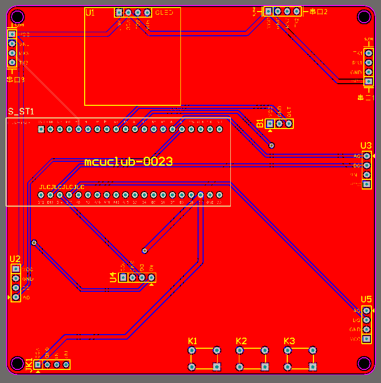PCB图是由原理图导出,封装很大一部分都是作者自己绘制,不提供封装库,只提供连接好的源文件,可以直接在嘉立创进行打板。两层板,上下覆铜接地。
