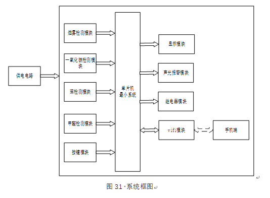 5、通过按键设置烟雾、CO、苯气体及甲醛最大值,另外,当烟雾值、CO、苯气体值及甲醛值小于等于设置最大值时,可手动控制风扇或净化器开关