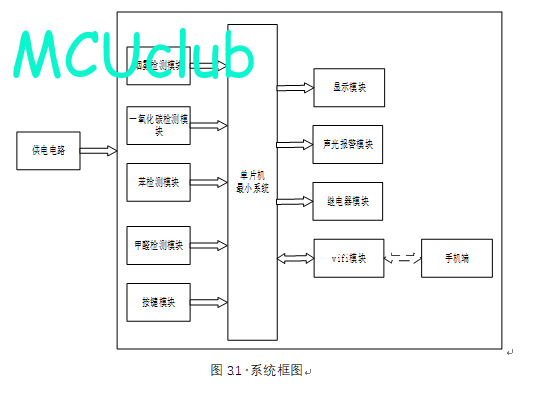 4、通过MS1100模块检测甲醛值,当甲醛值大于设置最大值时开启风扇和净化器,同时进行声光报警提醒