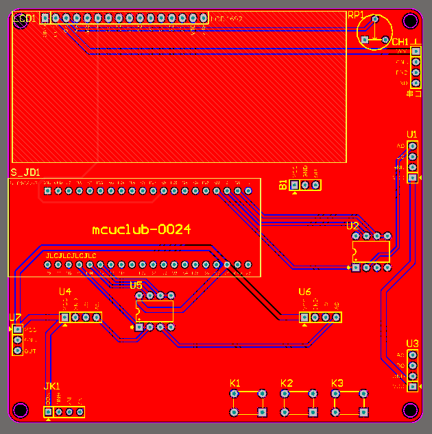 PCB图是由原理图导出,封装很大一部分都是作者自己绘制,不提供封装库,只提供连接好的源文件,可以直接在嘉立创进行打板。两层板,上下覆铜接地。