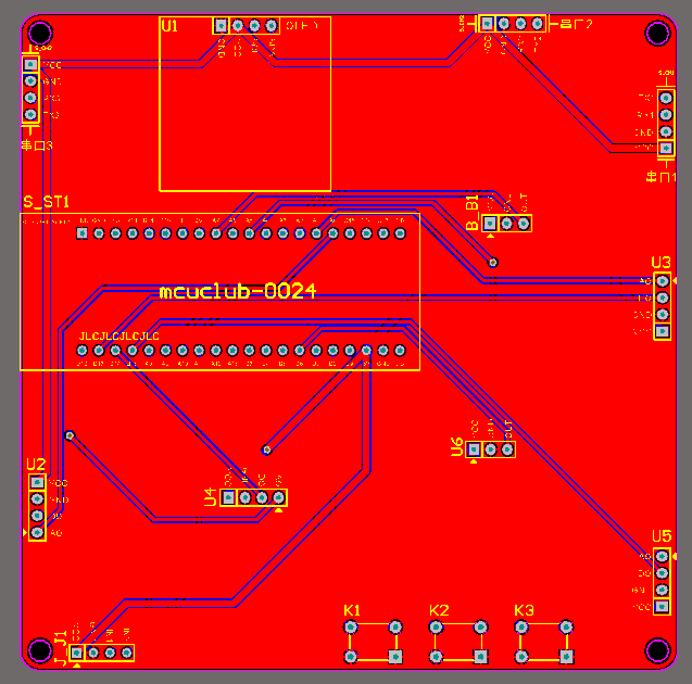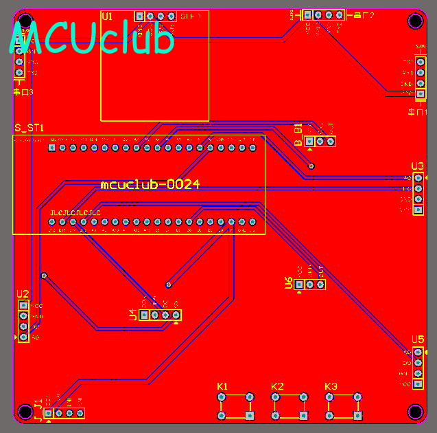 注意:PCB图中间有一个项目编号,隐藏在单片机底座下,插入单片机后不会看到。如果想截没有项目编号的PCB图,可在PCB源文件中点击删除。另外,如果想在实物PCB板上加自己的信息(比如日期、学号、姓名等),可联系客服。