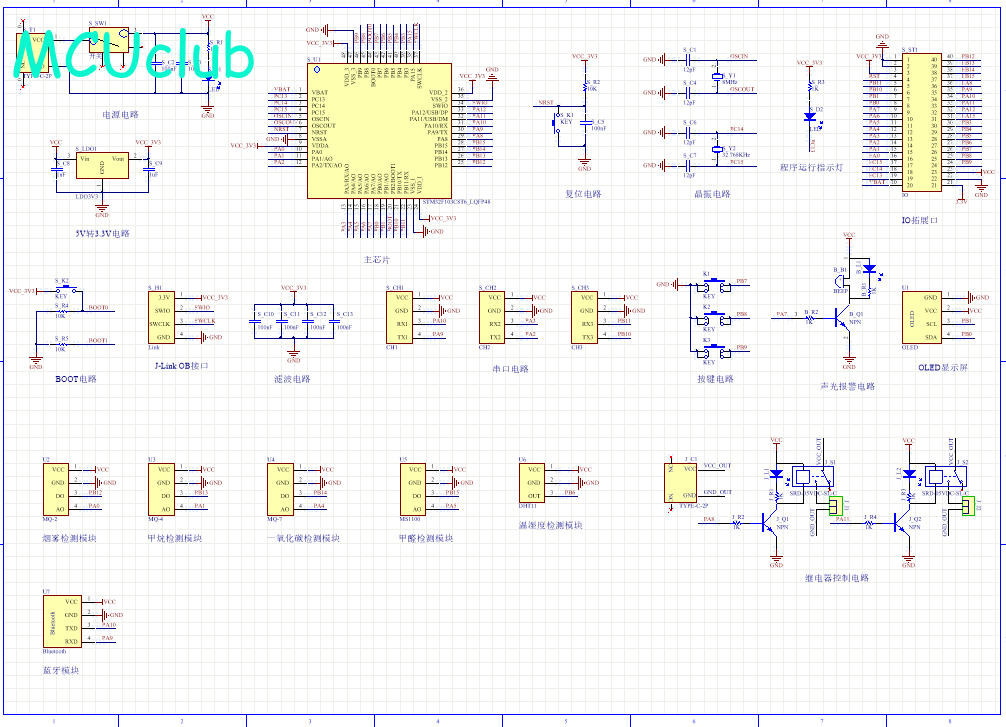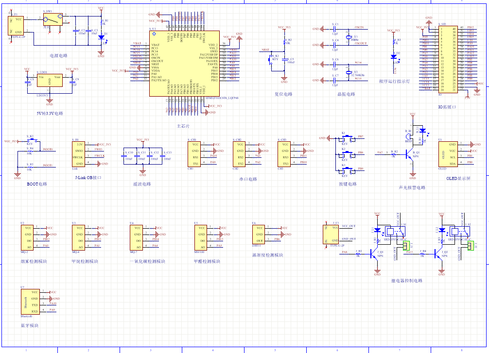 PCB图是由原理图导出,封装很大一部分都是作者自己绘制,不提供封装库,只提供连接好的源文件,可以直接在嘉立创进行打板。两层板,上下覆铜接地。