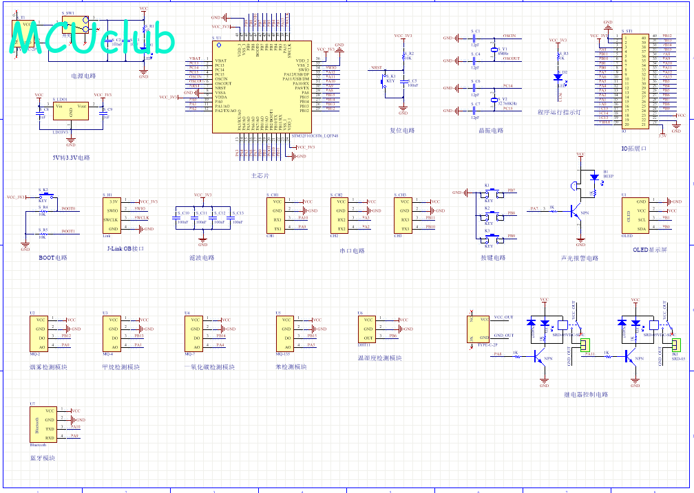 PCB图是由原理图导出,封装很大一部分都是作者自己绘制,不提供封装库,只提供连接好的源文件,可以直接在嘉立创进行打板。两层板,上下覆铜接地。