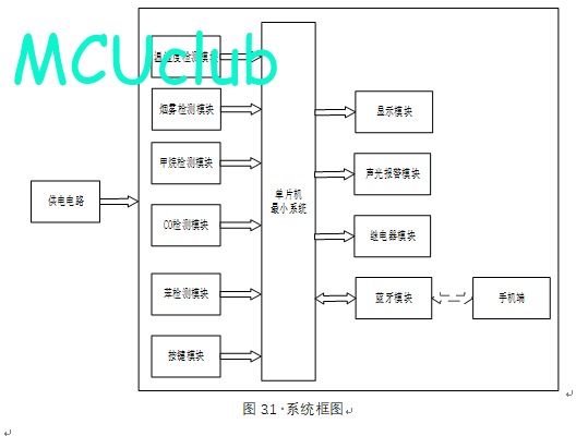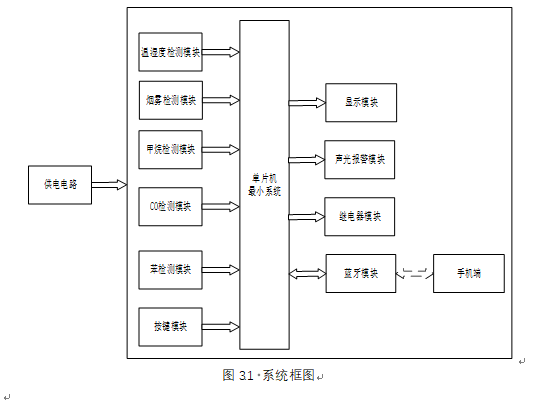 扩展功能:通过蓝牙模块将测量数据发送到手机端,手机端可设置温湿度上下限值、烟雾、甲烷、CO及苯气体最大值,另外,当烟雾值、甲烷值、CO值及苯气体值小于等于设置最大值时,可远程控制风扇或净化器开关
