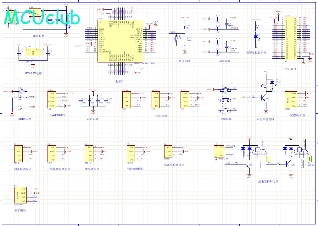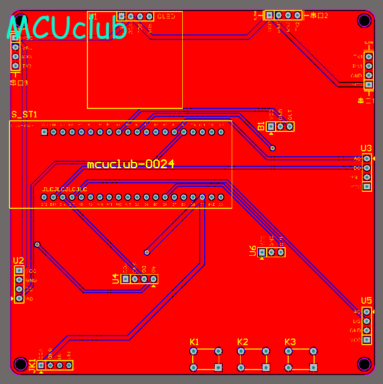 PCB图是由原理图导出,封装很大一部分都是作者自己绘制,不提供封装库,只提供连接好的源文件,可以直接在嘉立创进行打板。两层板,上下覆铜接地。