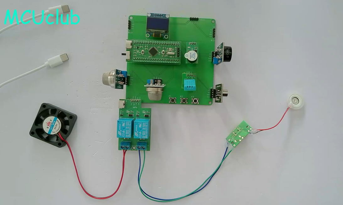 5、通过MS1100模块检测甲醛值,当甲醛值大于设置最大值时开启风扇和净化器,同时进行声光报警提醒