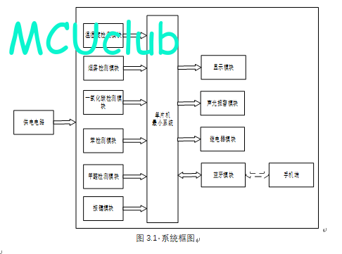扩展功能:通过蓝牙模块将测量数据发送到手机端,手机端可设置温湿度上下限值、烟雾、CO、苯气体及甲醛最大值,另外,当烟雾值、CO、苯气体值及甲醛值小于等于设置最大值时,可远程控制风扇或净化器开关