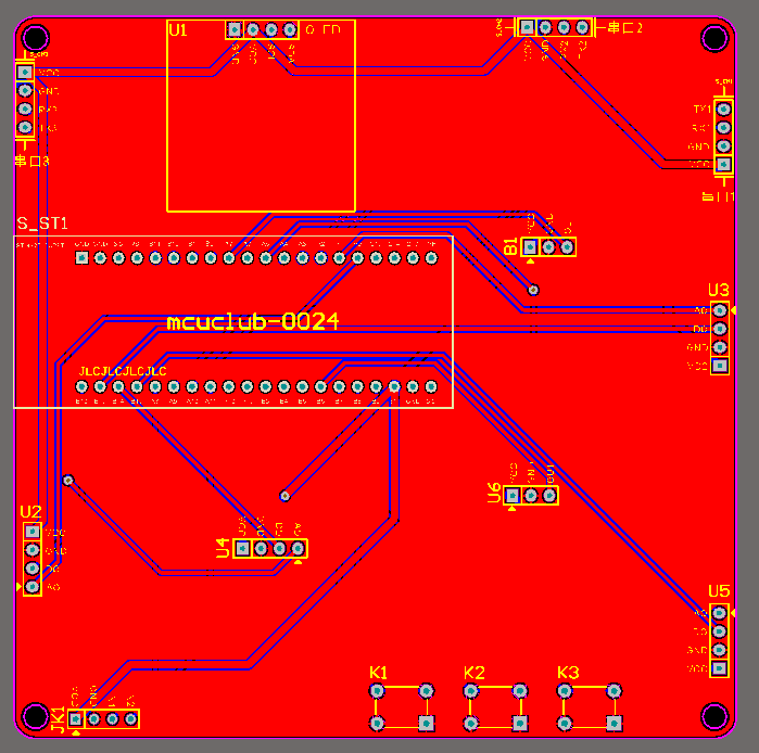 PCB图是由原理图导出,封装很大一部分都是作者自己绘制,不提供封装库,只提供连接好的源文件,可以直接在嘉立创进行打板。两层板,上下覆铜接地。