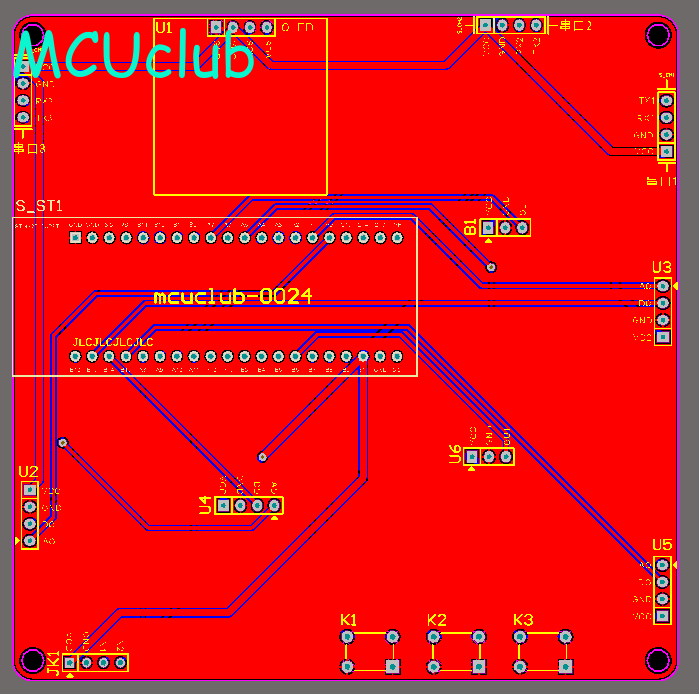 注意:PCB图中间有一个项目编号,隐藏在单片机底座下,插入单片机后不会看到。如果想截没有项目编号的PCB图,可在PCB源文件中点击删除。另外,如果想在实物PCB板上加自己的信息(比如日期、学号、姓名等),可联系客服。
