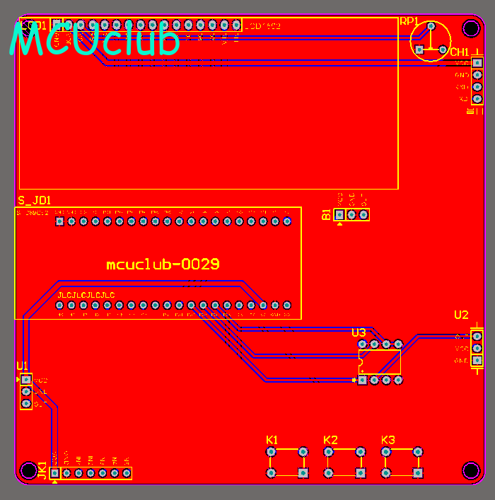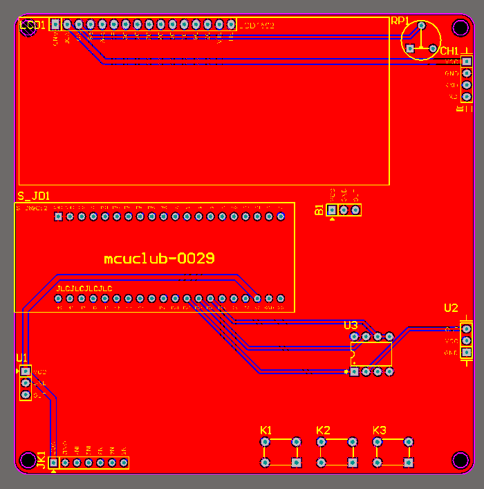 注意:PCB图中间有一个项目编号,隐藏在单片机底座下,插入单片机后不会看到。如果想截没有项目编号的PCB图,可在PCB源文件中点击删除。另外,如果想在实物PCB板上加自己的信息(比如日期、学号、姓名等),可联系客服。