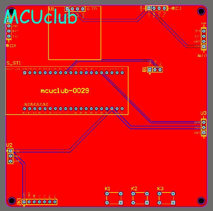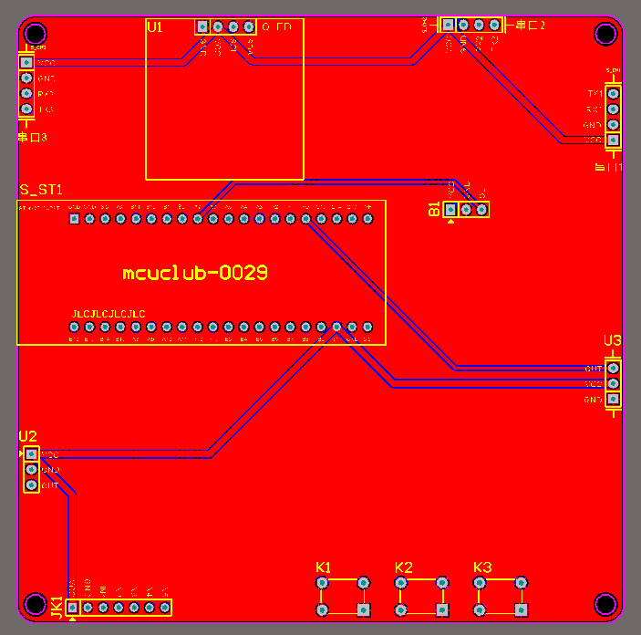 PCB图是由原理图导出,封装很大一部分都是作者自己绘制,不提供封装库,只提供连接好的源文件,可以直接在嘉立创进行打板。两层板,上下覆铜接地。
