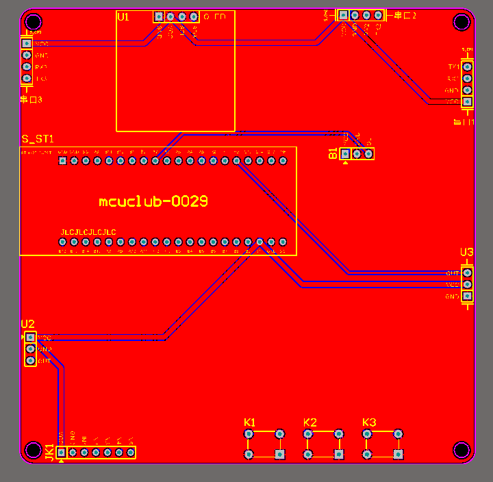 注意:PCB图中间有一个项目编号,隐藏在单片机底座下,插入单片机后不会看到。如果想截没有项目编号的PCB图,可在PCB源文件中点击删除。另外,如果想在实物PCB板上加自己的信息(比如日期、学号、姓名等),可联系客服。