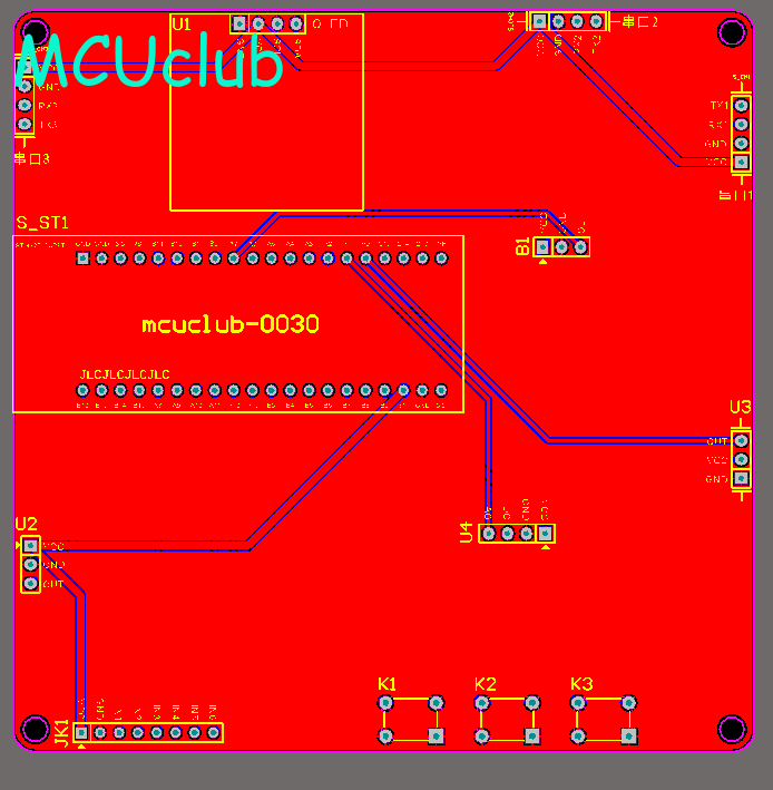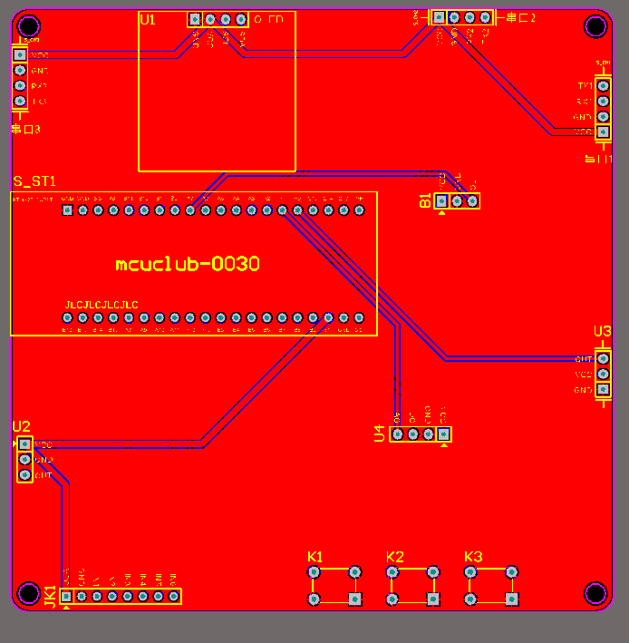 注意:PCB图中间有一个项目编号,隐藏在单片机底座下,插入单片机后不会看到。如果想截没有项目编号的PCB图,可在PCB源文件中点击删除。另外,如果想在实物PCB板上加自己的信息(比如日期、学号、姓名等),可联系客服。